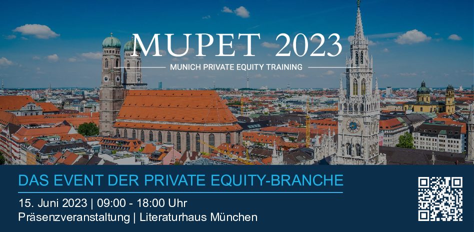 Auf der MUPET Munich Private Equity Training werden jährlich die aktuellen Themen und Entwicklungen der Private Equity-Branche vorgestellt und diskutiert. Als eine der marktführenden Private Equity-Veranstaltungen in Deutschland bietet sie zahlreiche Vorträge und Paneldiskussionen mit führenden Expertinnen und Experten in den Bereichen Private Funds, M&A und Tax.