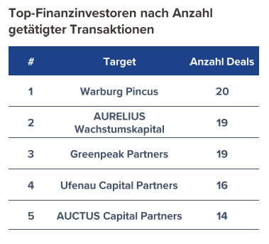 Sogenannte Mega-Deals über 10 Mrd. EUR kommen in Deutschland nicht so häufig vor. Bemerkenswert ist jedoch, dass es 23 Deals über 1 Mrd EUR Transaktionsvolumen gab und dass Finanzinvestoren an 9 der Top 30 Deals beteiligt waren. Wenn man berücksichtigt, dass Transaktionen mit Finanzinvestoren in der Regel einen höheren Leverage haben, dann ist die Finanzierungsbereitschaft von Banken und Debtfonds wieder angestiegen.